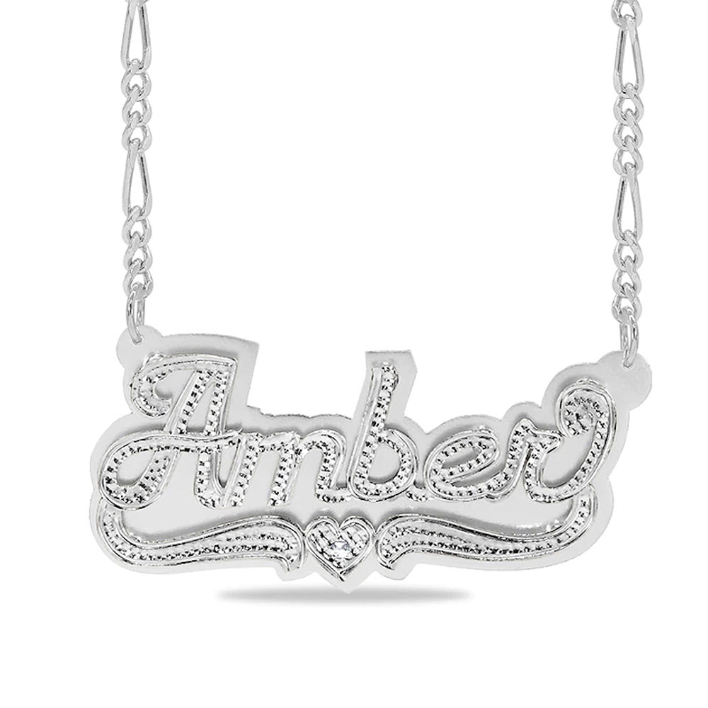 This Beautiful Classic Nameplate holds 1 genuine diamond in the heart under the name.