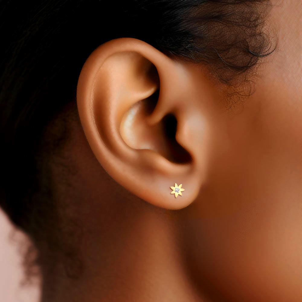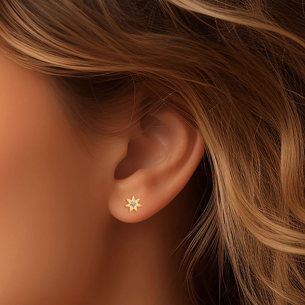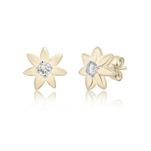 Elevate your elegance with these timeless Diamond Flower Stud Earrings. Crafted with exquisite detail, each delicate petal surrounds a brilliant 1/10 ct diamond,