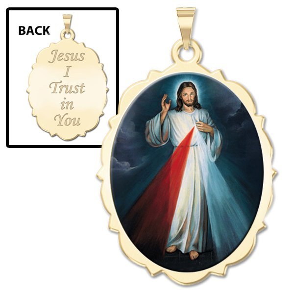 The front of the medal features the lord Jesus Christ and the back inscribes the words "Jesus I Trust In You."