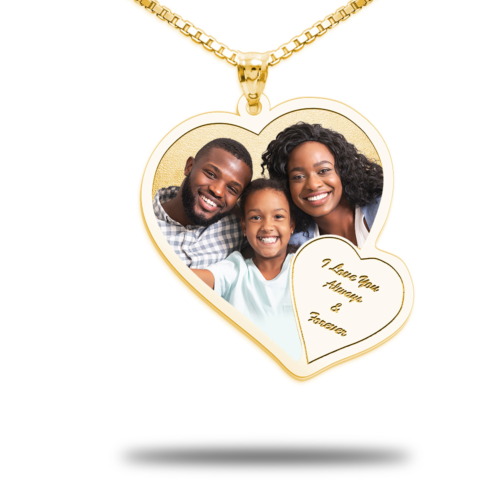 Your photo in full color permanently lasered onto your charm. This process being the most detailed. A protective jewelry enamel is added to every "color laser" pendant to ensure that every day your charm will look as beautiful as the day you took it out of the box.