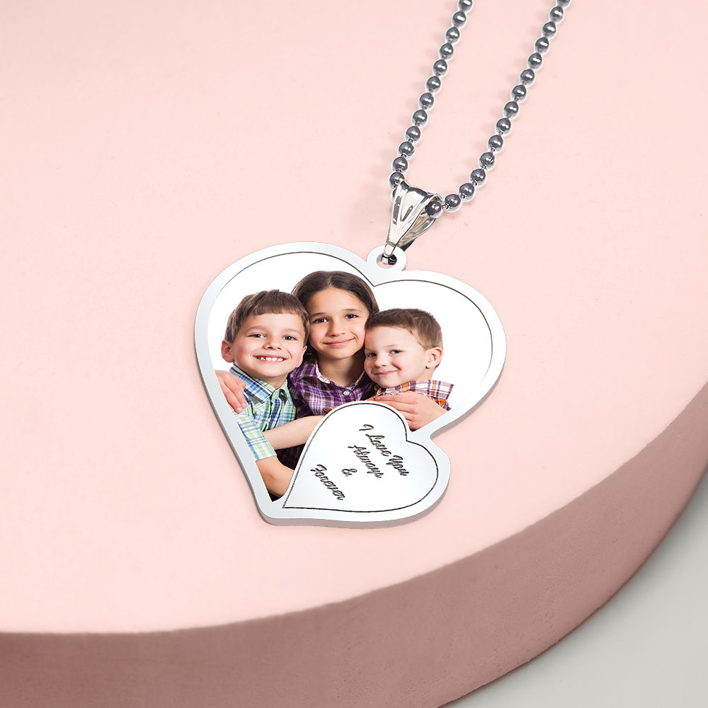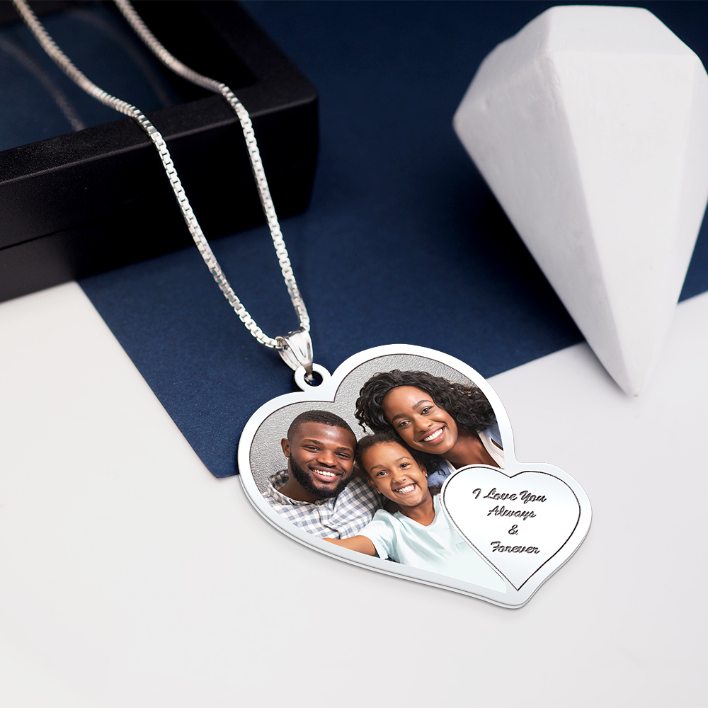 Our Double Heart Photo Pendant with Personalized Front Engraving necklace is perfect for expressing your undying affections. Crafted with a personalized front engraving, this stunning necklace will make your special someone feel loved.