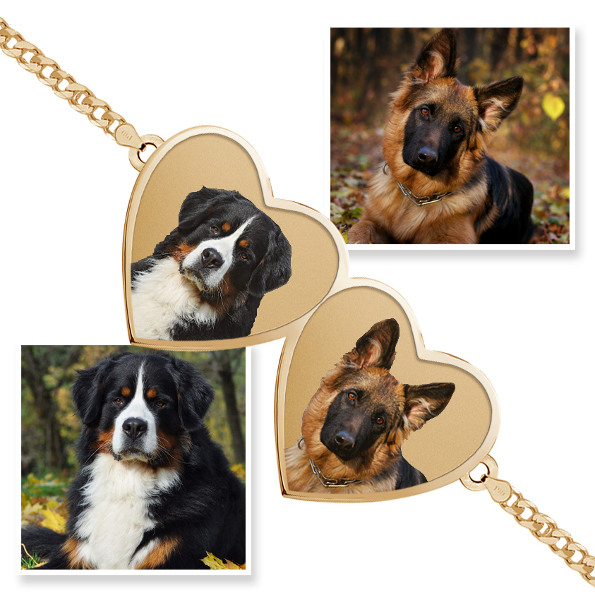 "I just recieved my order of two necklaces with my cat Gwenie's picture engraved in color and I can't begin to express how pleased I am with the attention to detail and care this company took to crop, center, and print her picture so perfectly on each necklace. My husband and I had to put our 19-yesr old cat down last week and these necklaces with her picture, mean so much to us. Thank you Pictures on Gold for creating such beautiful pieces of jewelry for us, we will cherish them forever."