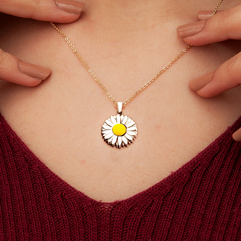 Exclusive Enameled Daisy Photo Necklace & Chain
