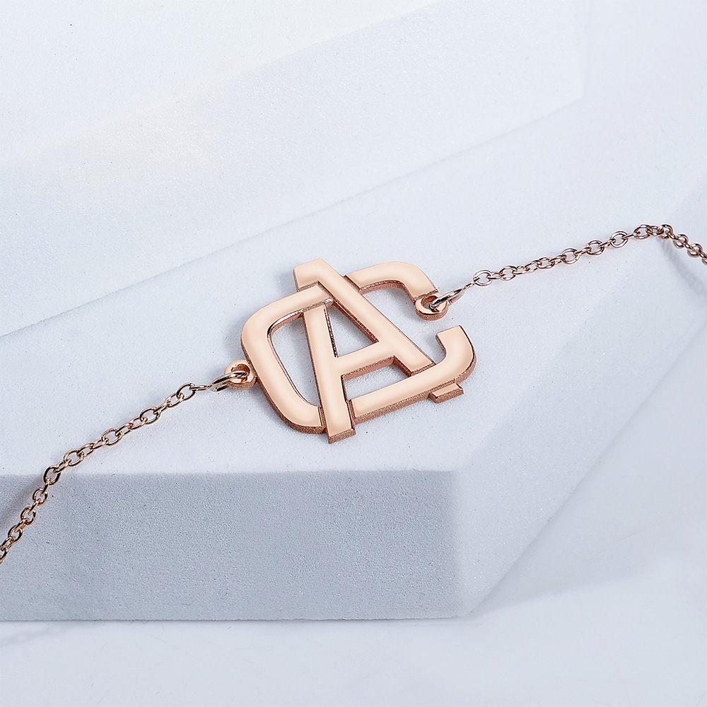 These exclusive Bracelet can only be purchased here and is the hottest new style in 2024. Elevate your personal style with our Overlapping Initial Bracelet. This chic and meaningful bracelet feature intertwined initials that celebrate your unique individuality. Crafted with precision and personalization, it is the perfect accessory to express yourself or share a special connection.