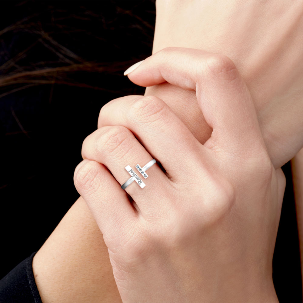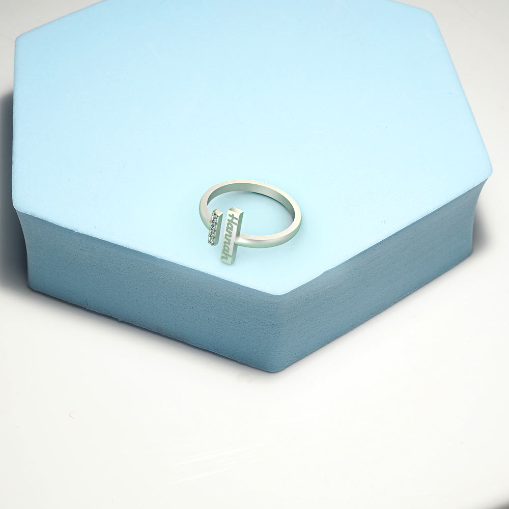 Introducing our exclusive Personalized Name Ring with Genuine Diamonds! This beautiful piece of jewelry is designed to add a touch of elegance to any outfit. With a sleek and timeless design, the ring features your name in a stylish script font, accented by sparkling genuine diamonds. Made from high-quality Sterling Silver, Sterling Silver Gold Plated and 14K Gold, this ring is the perfect way to show off your unique style and make a statement wherever you go. Personalize yours today and add a touch of luxury to your jewelry collection!