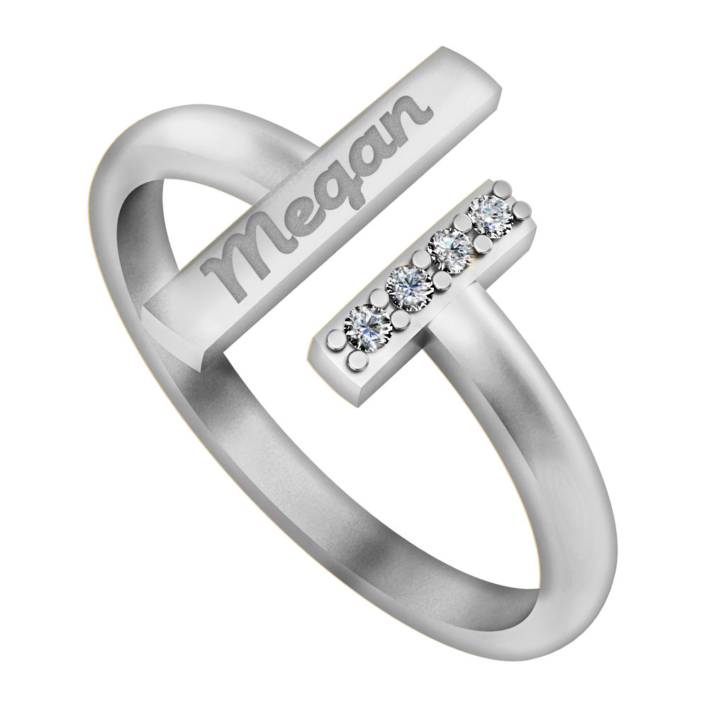 This beautiful Personalize Name Ring has 4 genuine 1 pt G color SI 1 diamonds.