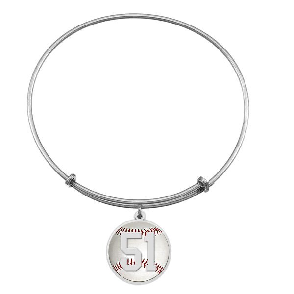 Expandable Bracelet w/ Round Baseball Sports Number Charm