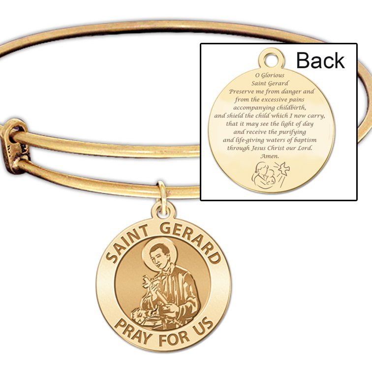 Expandable Bracelet W/ Saint Gerard Charm & "Expecting Mother Prayer" in Color or Laser Struck