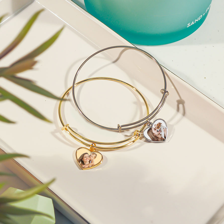 Expandable Photo Charm Heart Bracelet
