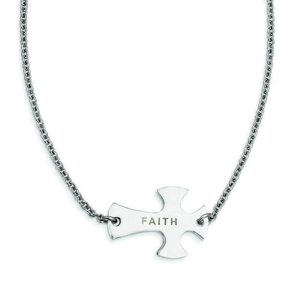 Stainless Steel Faith Large Sideways Cross Necklace's Average Weight is 8.10 GM Cross Measures at 1.1 Inch Wide x Over 3/4 Inch Tall 19 Inch Stainless Steel Chain Included