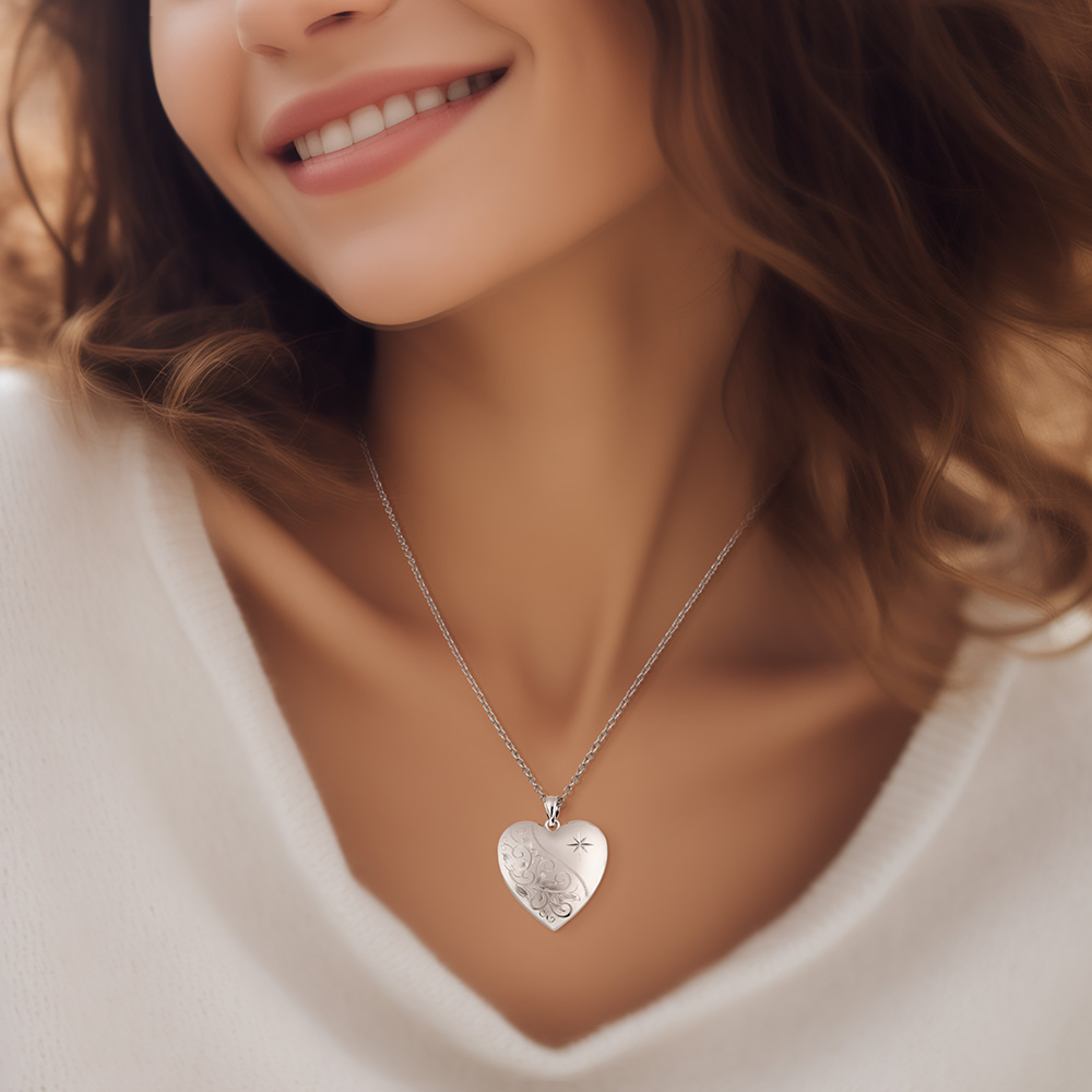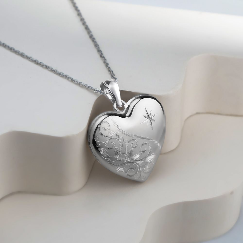 Elevate your style with our enchanting Floral Heart with Star Design Sterling Silver Locket. This exquisite piece features a captivating blend of floral motifs and a celestial star design, creating a unique and elegant accessory. Crafted from high-quality sterling silver, this locket is both beautiful and timeless, perfect for keeping your treasured memories close at hand. Embrace the magic of the stars and the beauty of nature with this stunning locket.