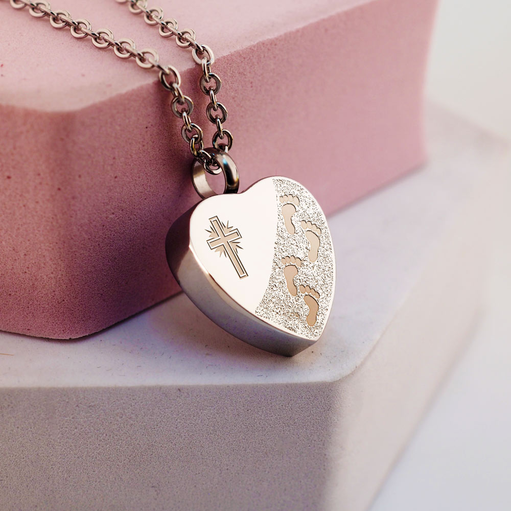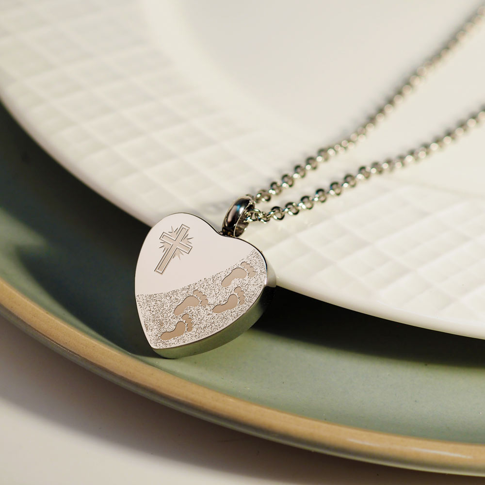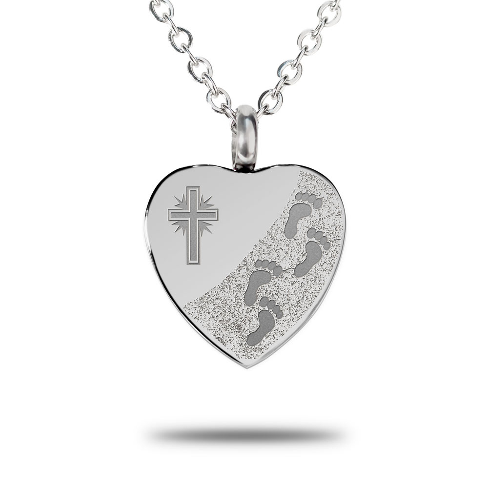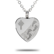 This Cremation Footprint in the Sand with Cross Heart pendant is the perfect way to keep your loved one with you at all