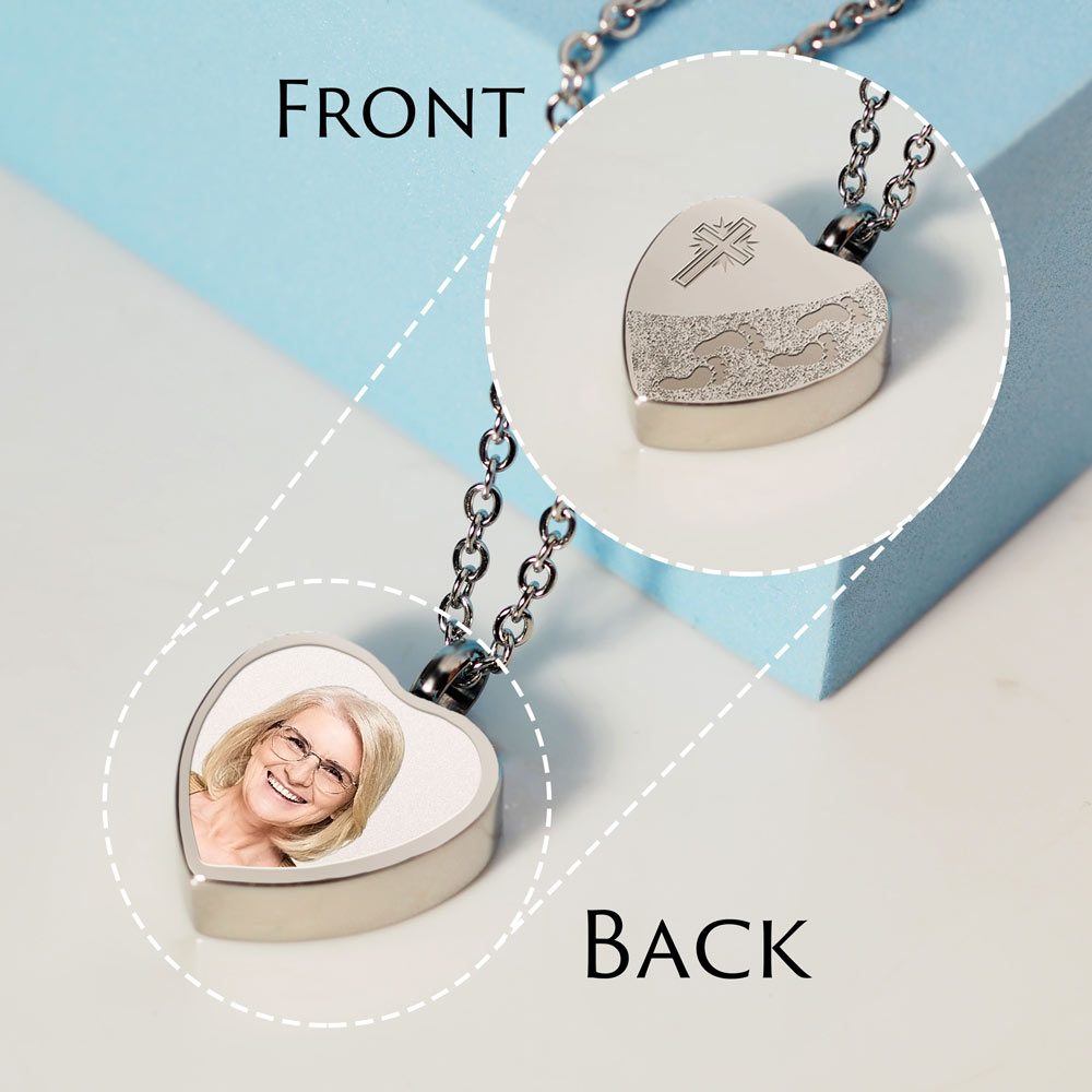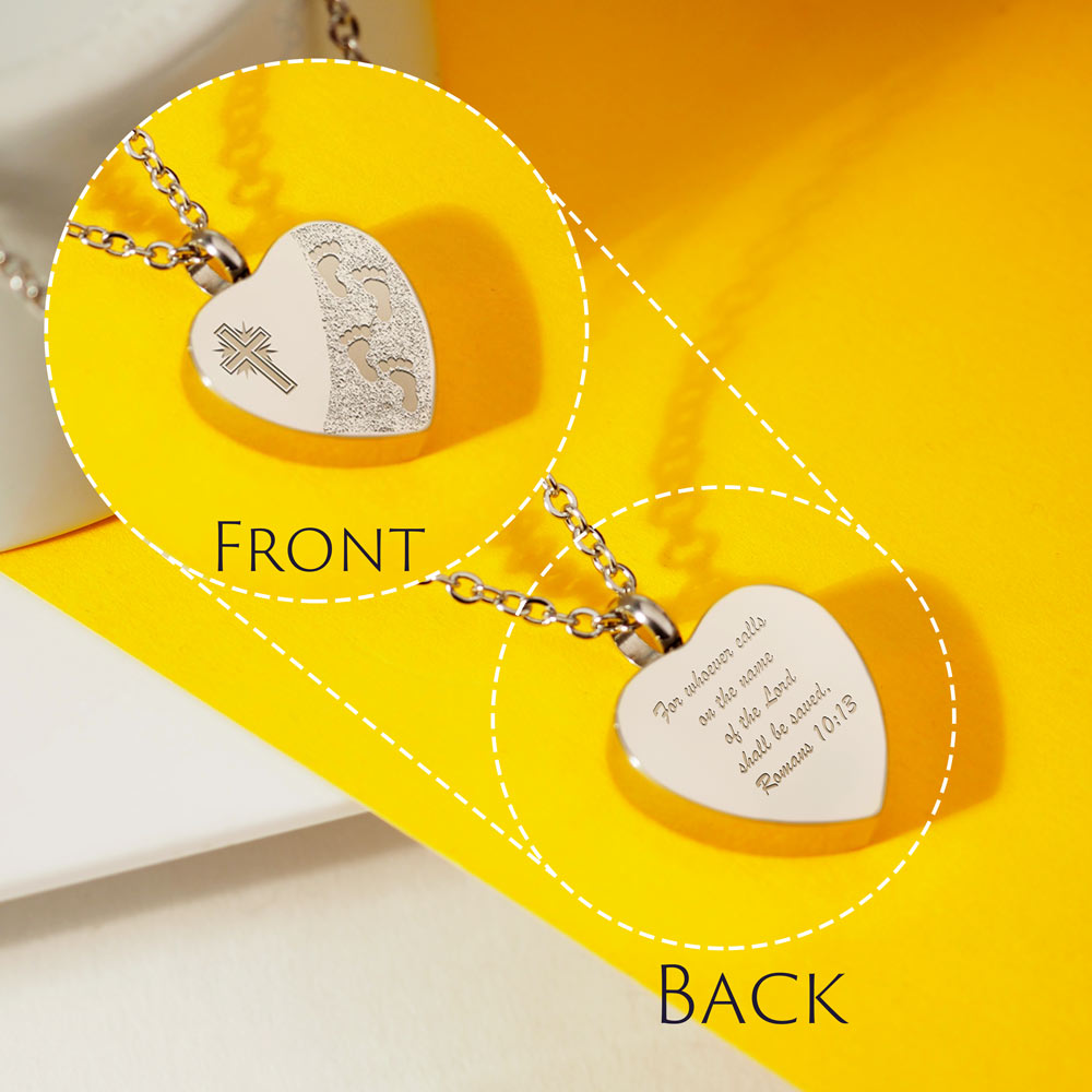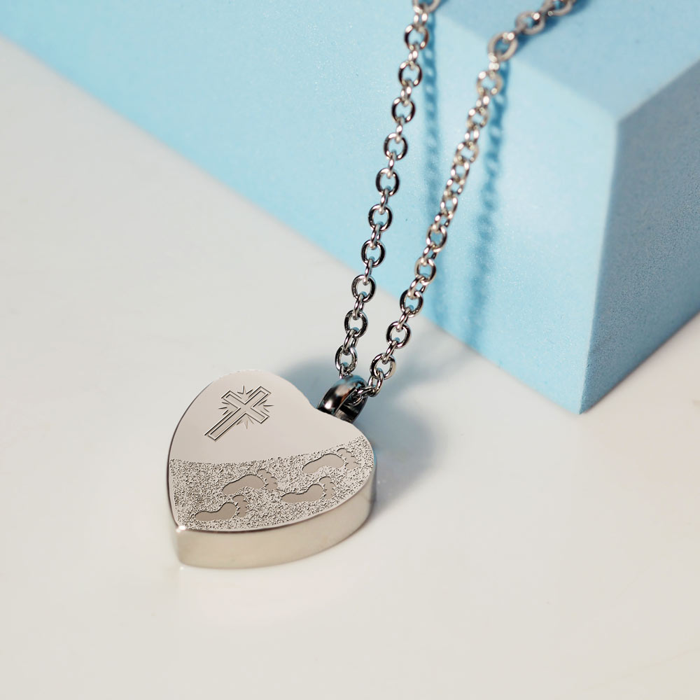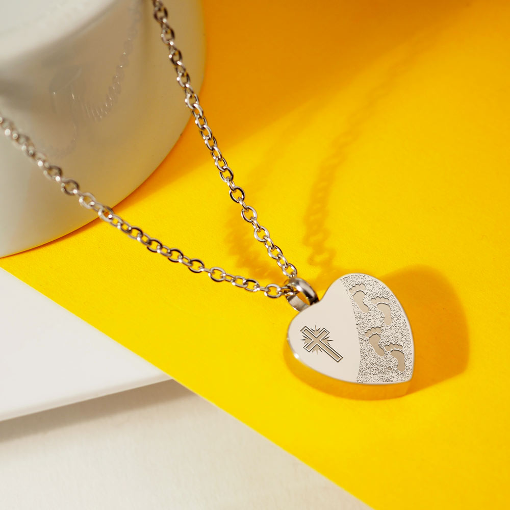 This Cremation Footprint in the Sand with Cross Heart pendant is the perfect way to keep your loved one with you at all