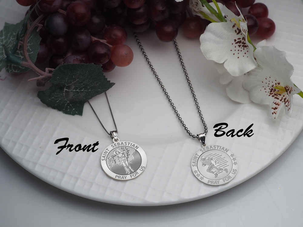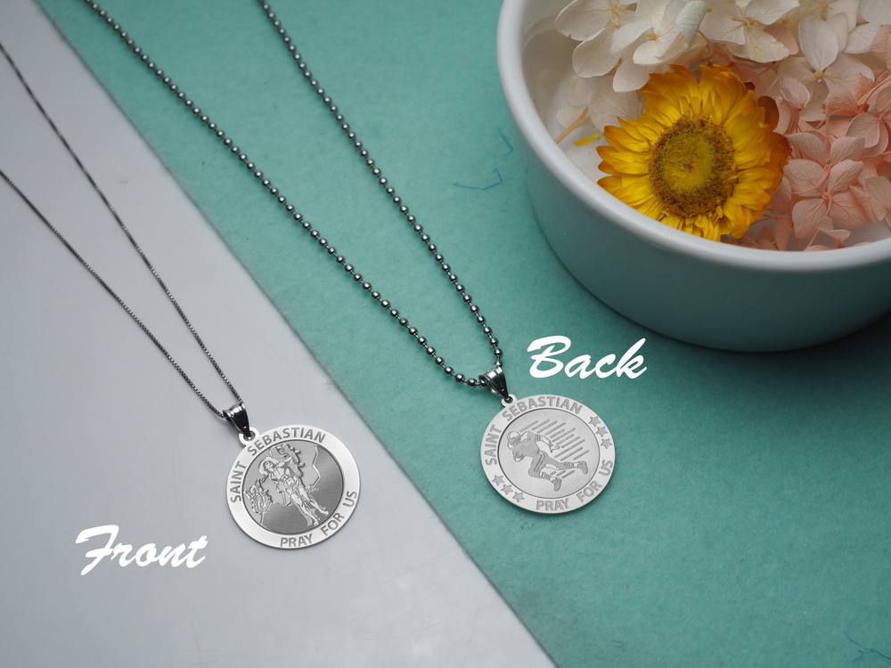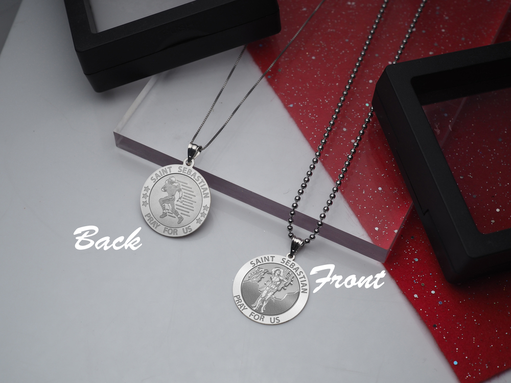 Each medal is engraved with a Saint Sebastian on the frontside