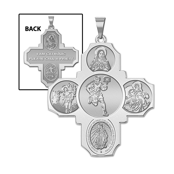 Four Way Cross - Basketball Male Religious Medal "EXCLUSIVE"