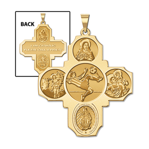 Four Way Cross - Soccer Male Religious Medal "EXCLUSIVE"