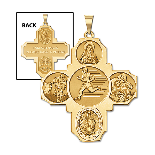 Four Way Cross - Track Male Religious Medal "EXCLUSIVE"