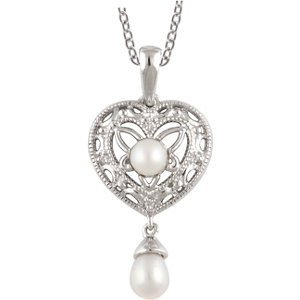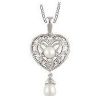 This Pendant comes with a 4 MM Freshwater Round Pearl, 5.3 MM Freshwater Pear Pearl and has .02 carats of diamonds. This item is approximately 1" x 1/2".