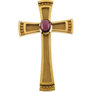 GENUINE GARNET RHODOLITE 14K YELLOW GOLD CAB CROSS