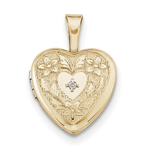 Gold Filled Baby Polished Heart Locket with w/ Diamond Center