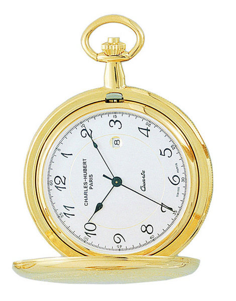 Gold-Plated Polished Finish Hunter Case Quartz Pocket Watch