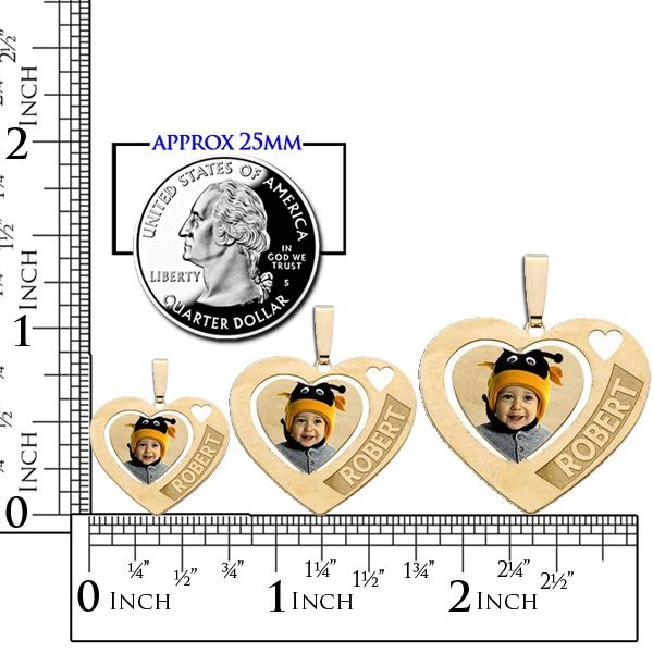 A:  Color Laser: Your photo in full color permanently lasered onto your charm. This process being the most detailed. We´ve had customers say, "My pendant actually looks better than the photo." A protective jewelry enamel is added to every "color laser" pendant to ensure that every day your charm will look as beautiful as the day you took it out of the box.