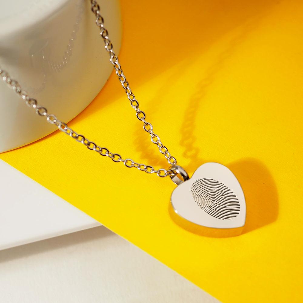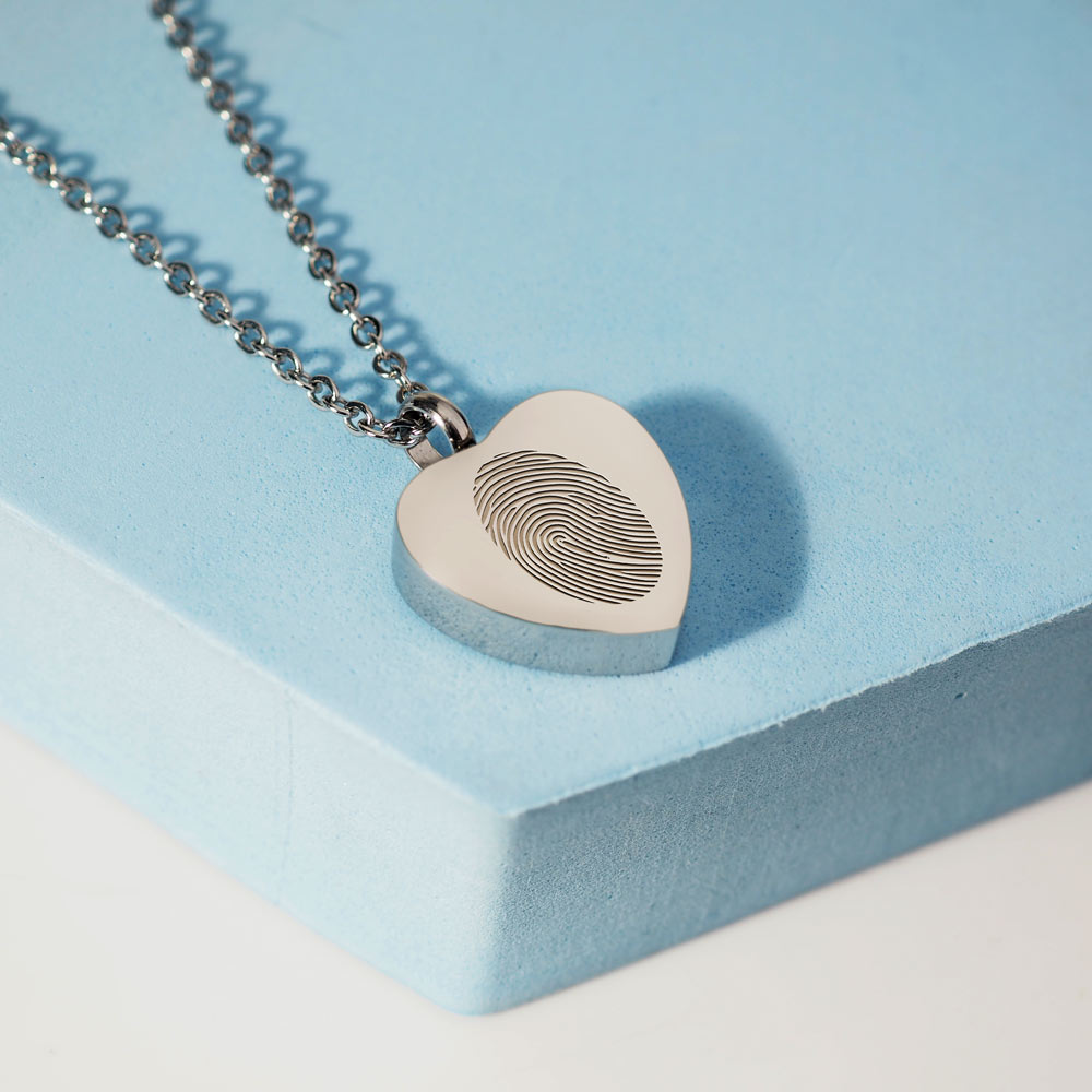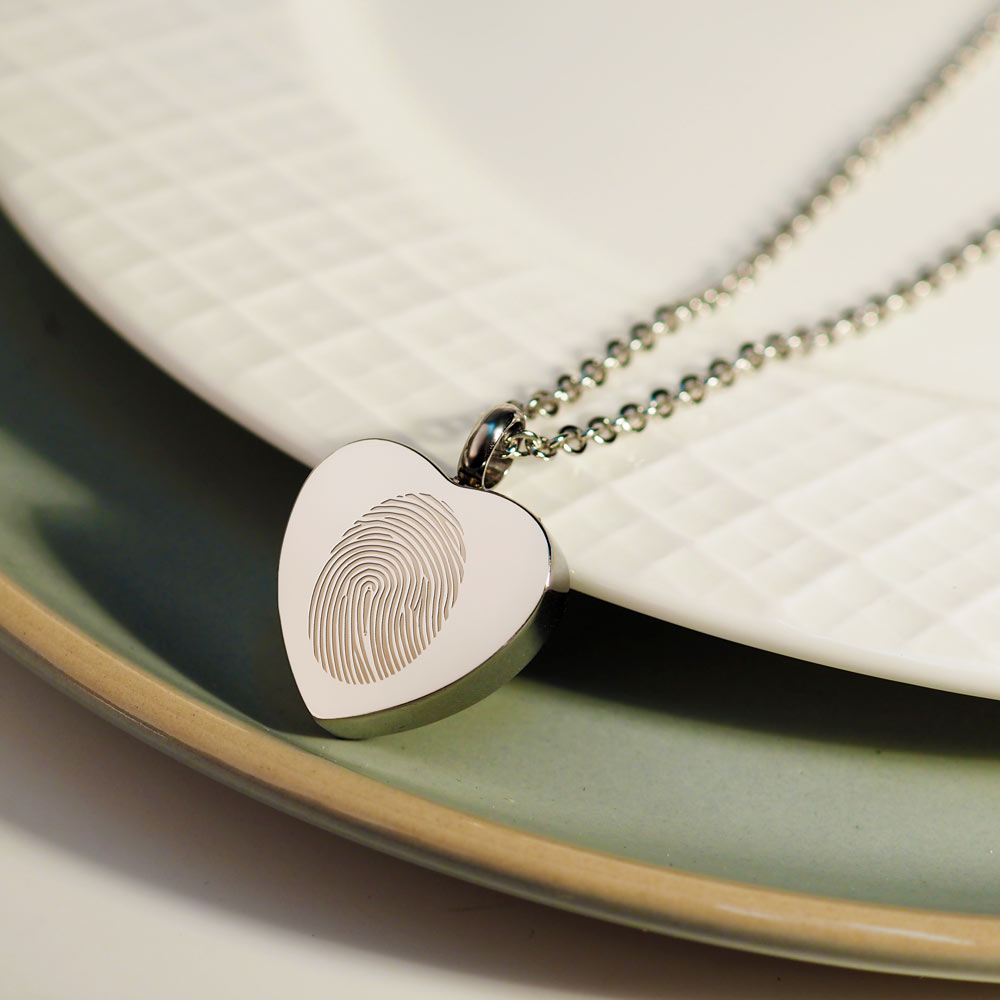 This Cremation Heart fingerprint pendant is the perfect way to keep your loved one with you at all times.