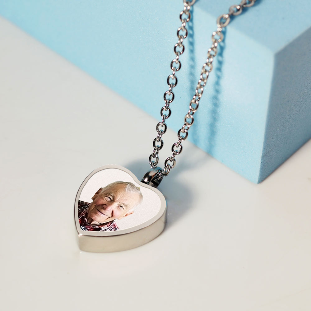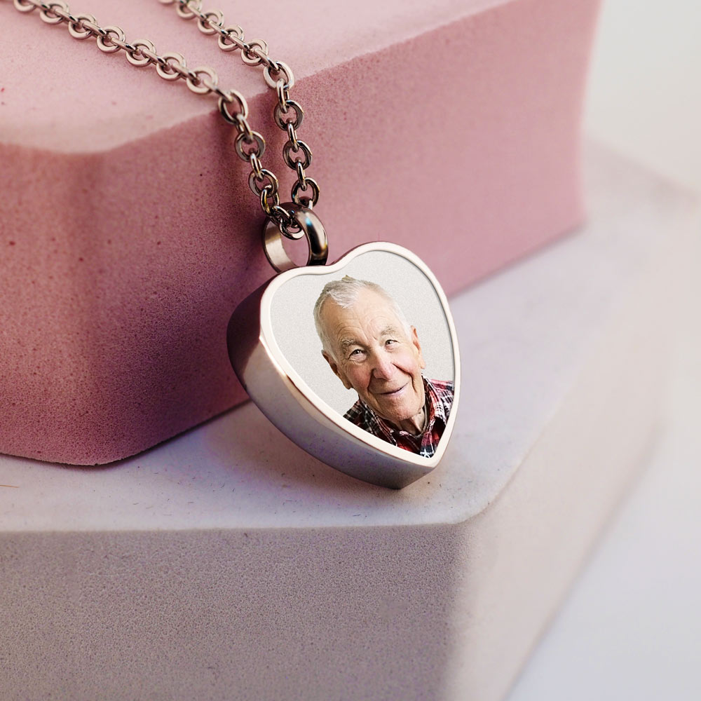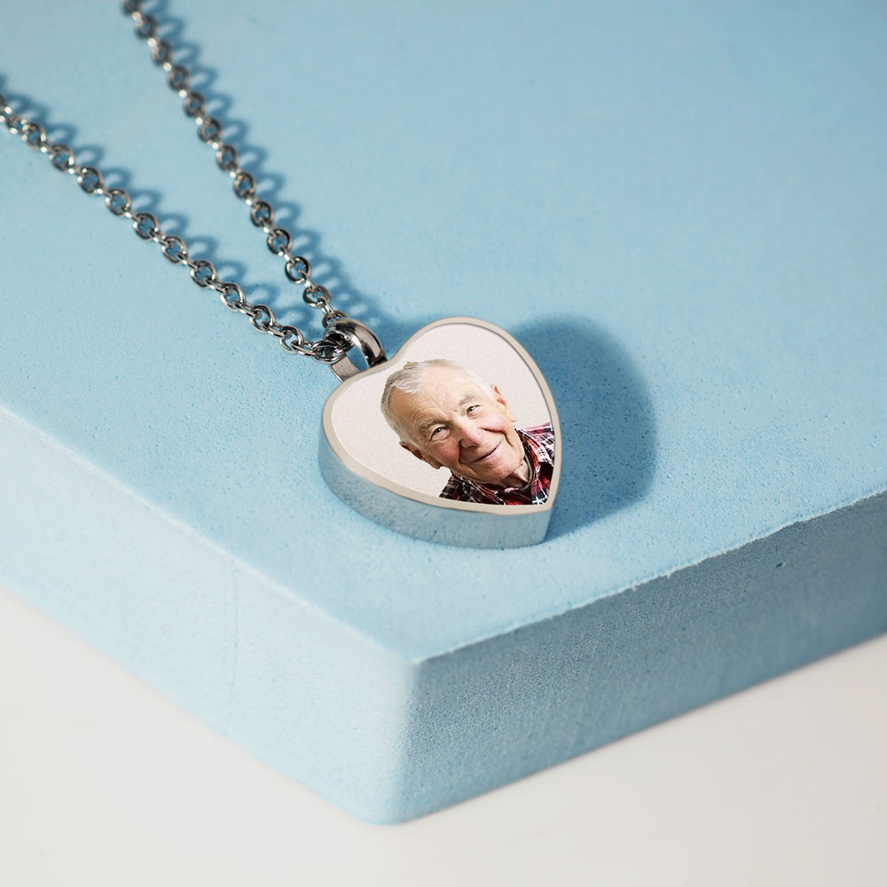 This Cremation Heart Photo pendant is the perfect way to keep your loved one with you at all times.