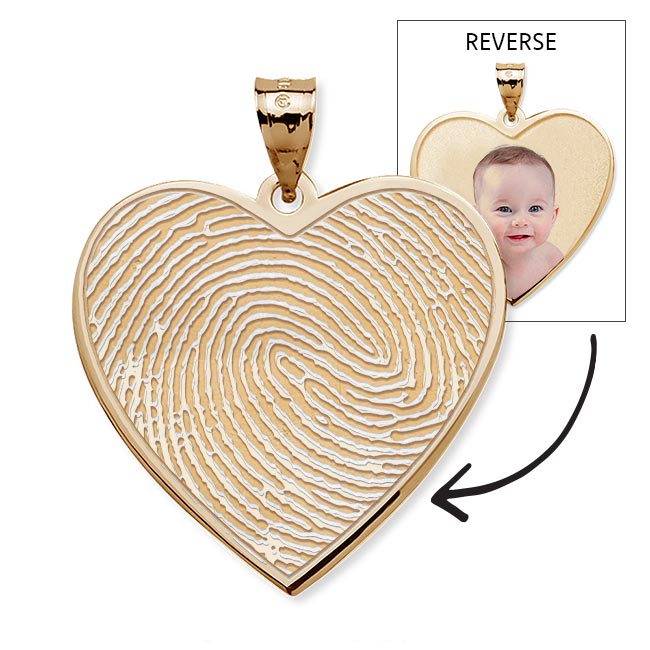 Custom Fingerprint Heart Charm or Pendant with Reverse Photo Option