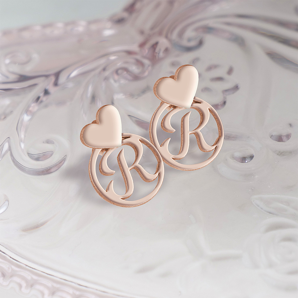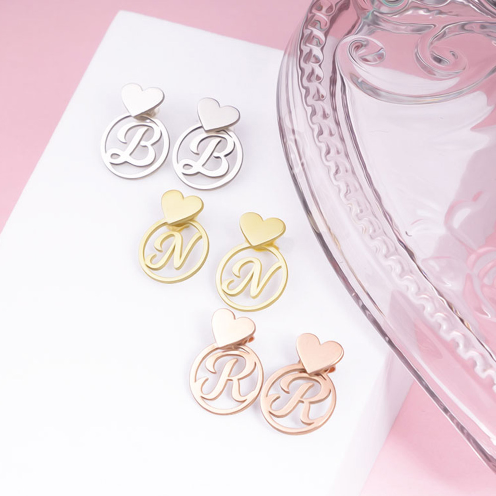 Add a personal touch to your ensemble with our Heart With Dangle Round Initial Charm Earrings. These stylish earrings feature a heart-shaped base with a dangling round charm, customizable with your chosen initial. Delicately crafted for everyday elegance, they make a thoughtful gift or a chic addition to your own jewelry collection.