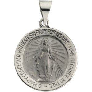 "I've purchased two Miraculous Medals from you at different times. Both times I've been highly satisfied. They came when expected and there were no hidden costs. Actually look so much better than pictures on site. No photo does jewelry any justice. The recent one I got was in sterling silver. I bought it for a friend for Mothers Day as she keeps admiring the one I always wear. Won't she be surprised. Thank you for your meticulous work in creating this fine jewelry."