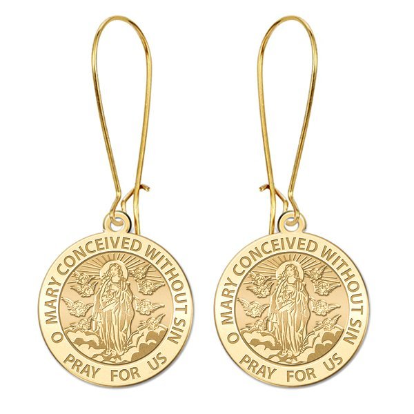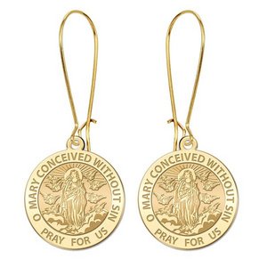 *Price Per Pair * Each Earring is 15mm / 1/2" inch (smaller than a dime) The Immaculate Conception is, according to Roman Catholic dogma, the conception of Mary, the mother of Jesus without any stain of original sin, in her mother's womb: the dogma thus says that, from the first moment of her existence, she was preserved by God from the lack of sanctifying grace that afflicts mankind, and that she was instead filled with divine grace. It is further believed that she lived a life completely free from sin. Her immaculate conception in the womb of her mother, by normal sexual intercourse (Christian tradition identifies her parents as Sts. Joachim and Anne), should not be confused with the doctrine of the virginal conception of her son Jesus. The feast of the Immaculate Conception, celebrated on December 8, was established as a universal feast in 1476 by Pope Sixtus IV. He did not define the doctrine as a dogma, thus leaving Roman Catholics freedom to believe in it or not without being accused of heresy; this freedom was reiterated by the Council of Trent. The existence of the feast was a strong indication of the Church's belief in the Immaculate Conception, even before its 19th century definition as a dogma. In the Roman Catholic Church, the Solemnity of the Immaculate Conception is a Holy Day of Obligation, except where conferences of bishops have decided, with the approval of the Holy See, not to maintain it as such. It is a public holiday in some countries where Roman Catholicism is predominant e.g. Italy. In the Philippines, although this is not a public holiday, the predominance of Catholic Schools make it almost a holiday. The Immaculate Conception was solemnly defined as a dogma by Pope Pius IX in his constitution Ineffabilis Deus, on December 8, 1854. The Roman Catholic Church believes the dogma is supported by Scripture (e.g. Mary's being greeted by Angel Gabriel as "full of grace" or "highly favoured"), as well as either directly or indirectly by the writings of many of the Church Fathers, and often calls Mary the Blessed Virgin (Luke 1:48). Catholic theology maintains that, since Jesus became incarnate of the Virgin Mary, it was fitting that she be completely free of sin for expressing her fiat. (Ott, Fund., Bk 3, Pt. 3, Ch. 2, 3.1.e).