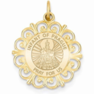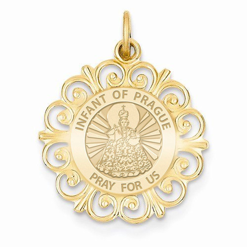 Infant of Prague Round Filigree Religious Medal "EXCLUSIVE"