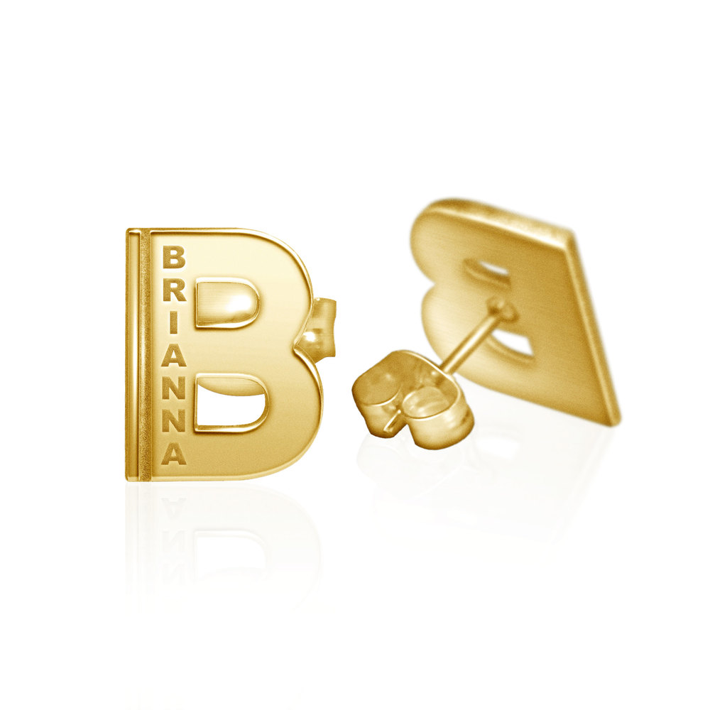 Introducing our "Initial Name Earrings With Block Name" - a sophisticated blend of personalization and style. Crafted with exquisite attention to detail, each earring showcases your chosen initial, accompanied by an engraved name in block writing. These earrings are a perfect way to express your individuality and add a touch of elegance to any outfit, making them a must-have accessory for every occasion.