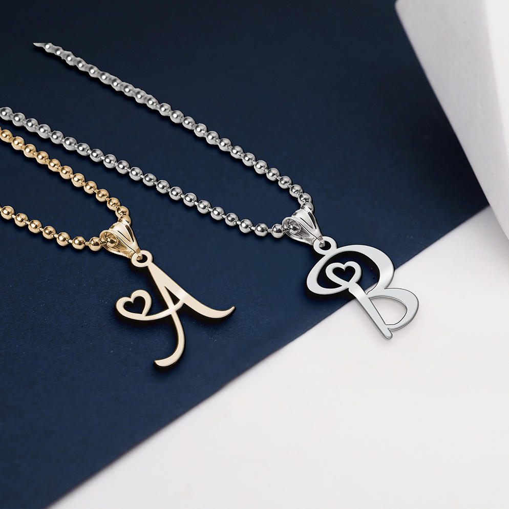 beautifully crafted pendant featuring an initial of your choice and a small heart making it truly distinctive.