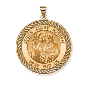 Jesus Mary Joseph Round Rope Border Religious Medal