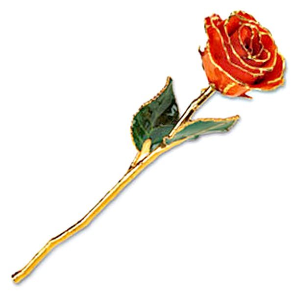 Beautiful, REAL ROSES are handpicked, then treated through a very delicate electroform process to protect and preserve their natural beauty. Each one is then individually dipped in 24k gold or lacquer; and trimmed in 24k gold. Each medium stem rose measures approximately 11" to 12" long and is packaged in a lovely gift box.