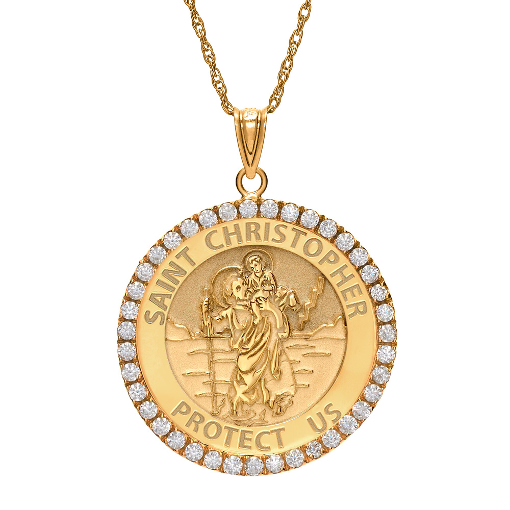 Large Saint Christopher Diamond Round Religious Medal - "EXCLUSIVE"