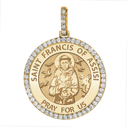 Large Saint Francis of Assisi Diamond Round Religious Medal - "EXCLUSIVE"