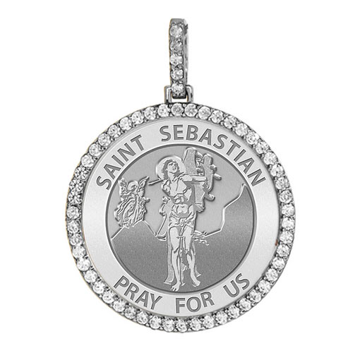 Large Saint Sebastian Diamond Round Religious Medal - "EXCLUSIVE"