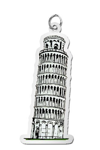 Leaning Tower of Pisa Charm is approximately 1/2" X 1/2". If a charm is very long then the longer part will be 1/2" inch. 1/2" is around the size of a Dime. Charm includes a split ring so you can easily attach a charm bracelet.