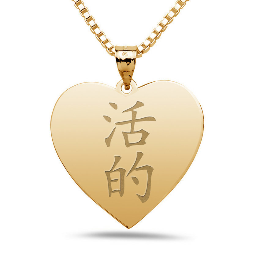 "Live" Chinese Symbol Heart Pendant