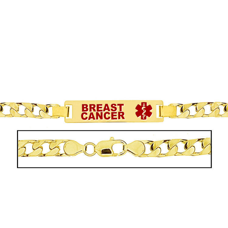 Men's Breast Cancer Curb Link Medical ID Bracelet