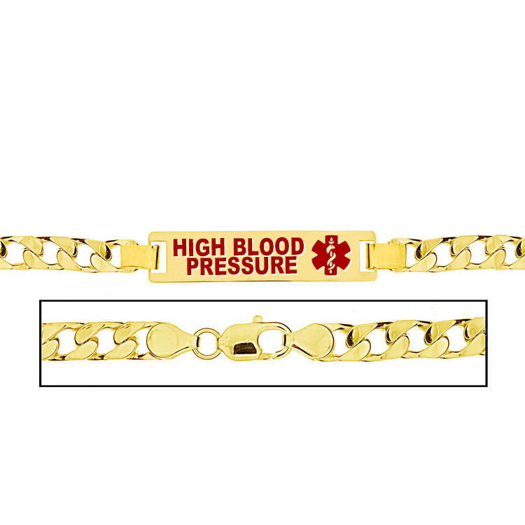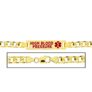 Men's High Blood Pressure Curb Link Medical ID Bracelet