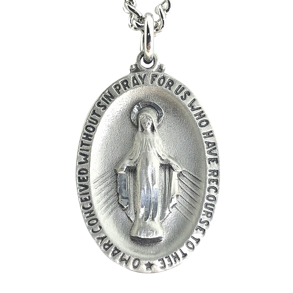"I've purchased two Miraculous Medals from you at different times. Both times I've been highly satisfied. They came when expected and there were no hidden costs. Actually look so much better than pictures on site. No photo does jewelry any justice. The recent one I got was in sterling silver. I bought it for a friend for Mothers Day as she keeps admiring the one I always wear. Won't she be surprised. Thank you for your meticulous work in creating this fine jewelry."