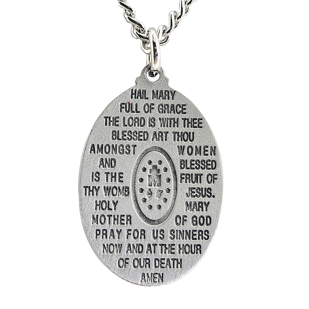 Miraculous Medal Doubled sided with Hail Mary including a 24 inch Endless Curb Chain