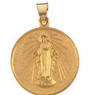 "I've purchased two Miraculous Medals from you at different times. Both times I've been highly satisfied. They came when expected and there were no hidden costs. Actually look so much better than pictures on site. No photo does jewelry any justice. The recent one I got was in sterling silver. I bought it for a friend for Mothers Day as she keeps admiring the one I always wear. Won't she be surprised. Thank you for your meticulous work in creating this fine jewelry."