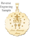 We can engrave a message on the back of your Miraculous Medal by altering the size of the symbol on the back leaving room for your engraving.