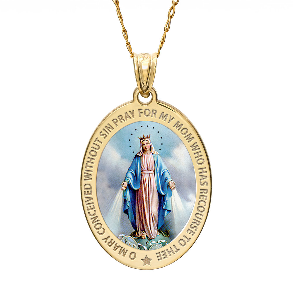 Pray For My Mom Miraculous Medal Religious Color Oval Pendant