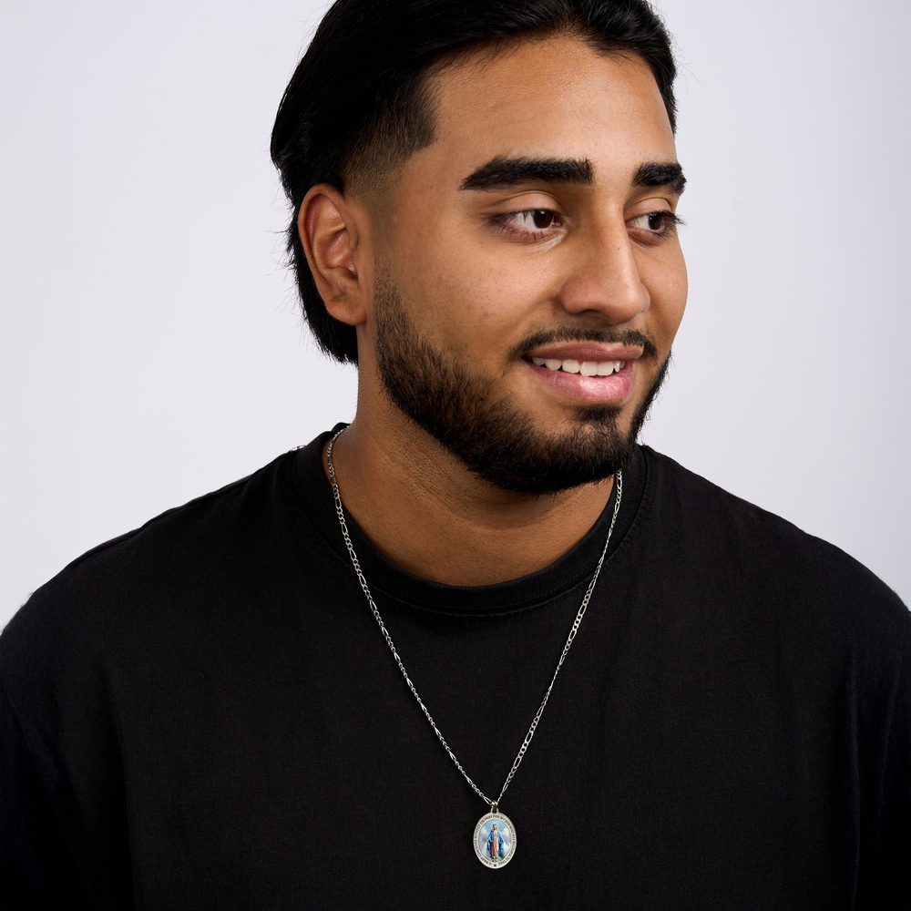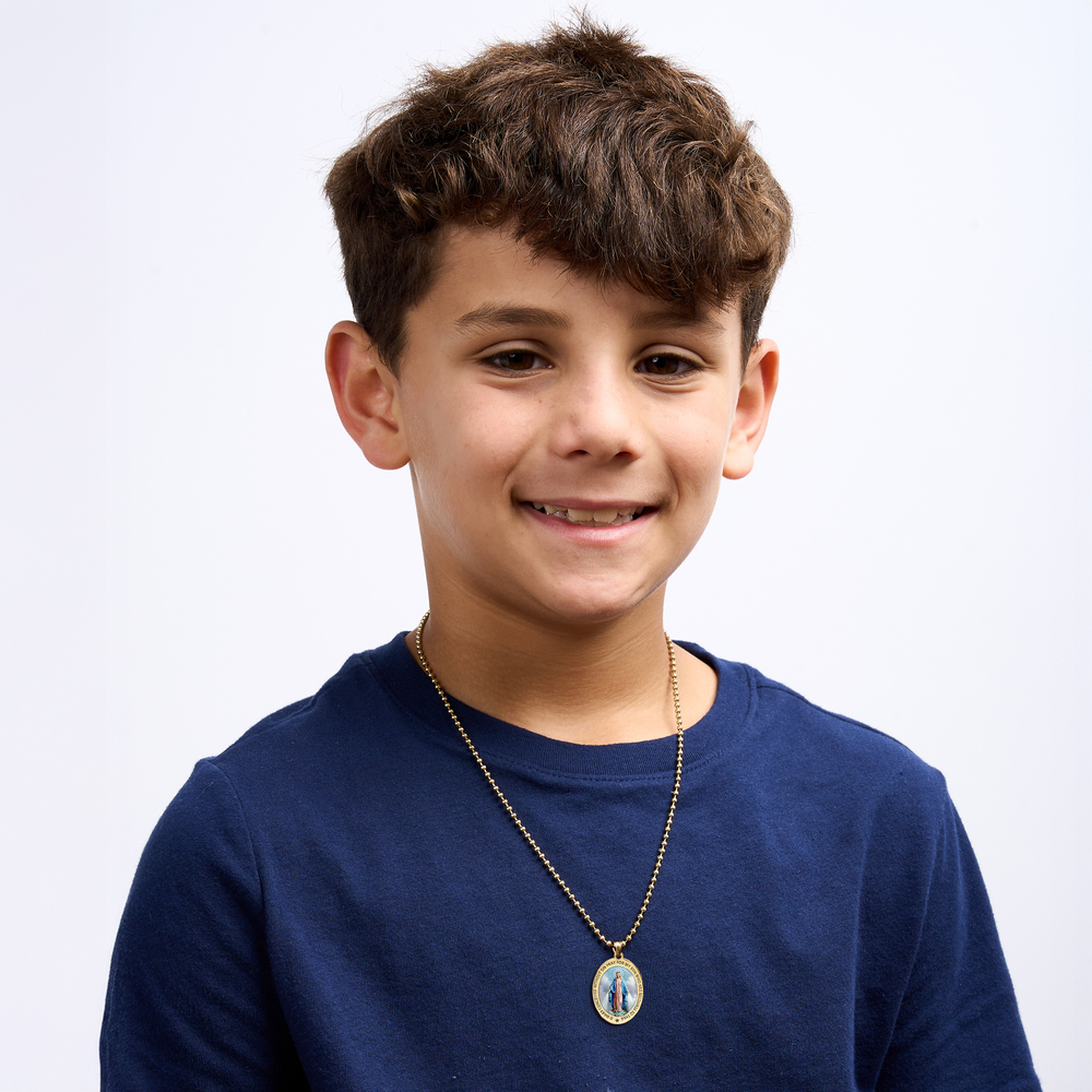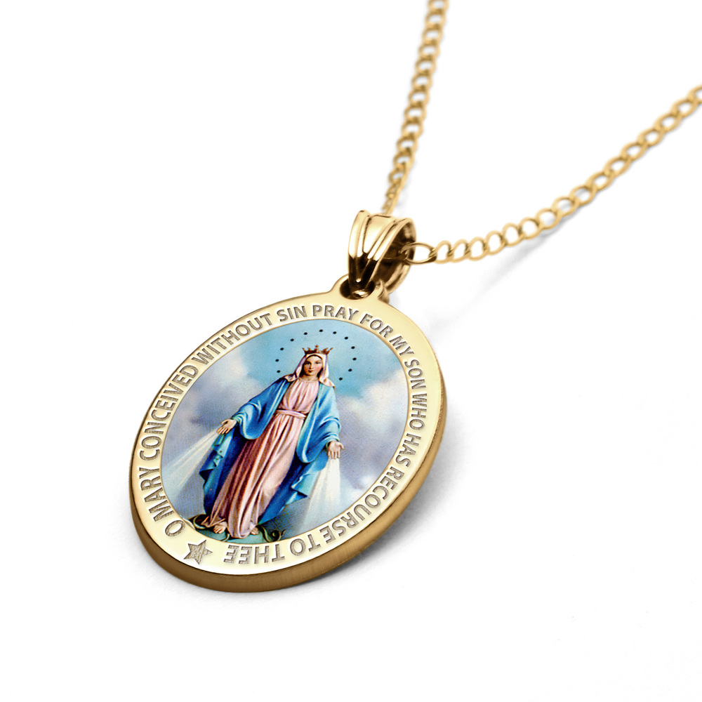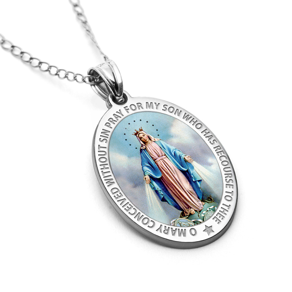 Pray For My Son Color Miraculous Medal Oval Pendant